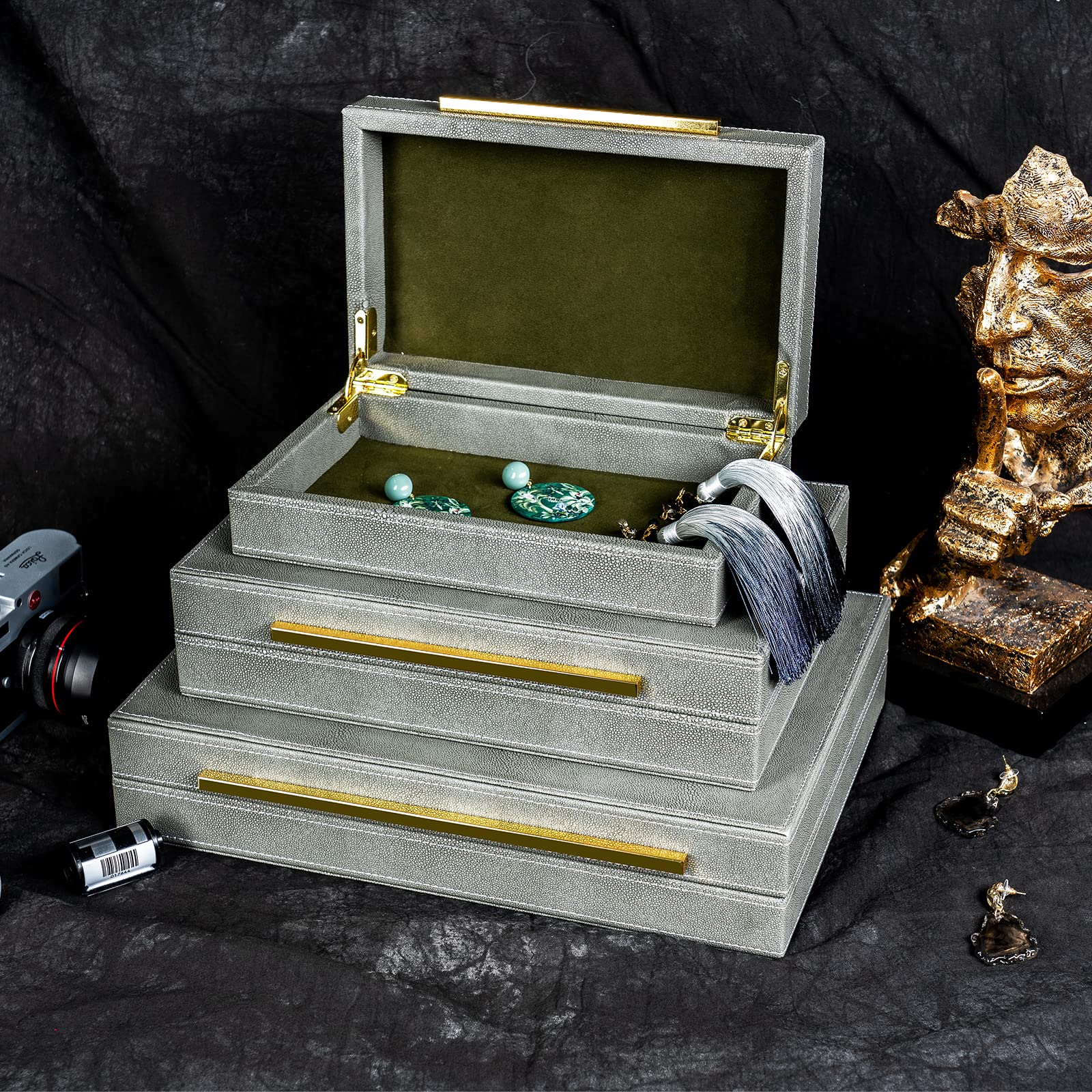 Amazon Com Xinstar Faux Dark Grey Shagreen Leather Decorative Boxes Decorative Storage Boxes With Lids 3 Pcs Set Storage Boxes Jewelry Organizer Women S Accessory Organizer Men S Jewelry Organizer Clothing Shoes Jewelry
